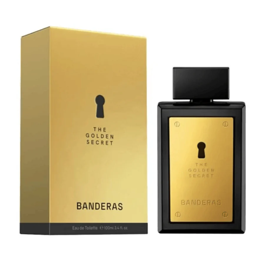 The Golden Secret de Antonio Banderas es una fragancia de la familia olfativa Aromática Especiada para Hombres. Las Notas de Salida son manzana, menta y notas verdes; las Notas de Corazón son nuez moscada, pimienta y comino; las Notas de Fondo son cuero, cedro y almizcle.