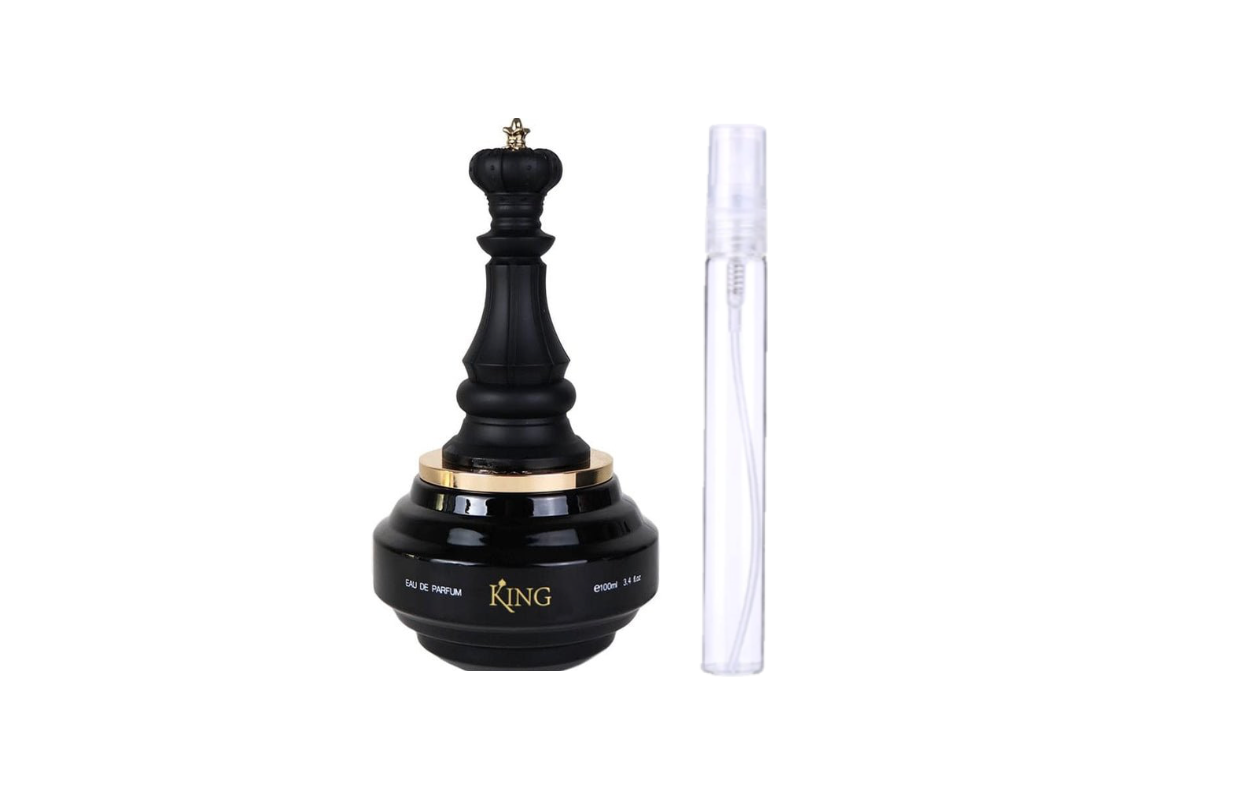 King de Armaf es una fragancia de la familia olfativa Oriental Amaderada para Hombres. Esta fragrancia es nueva. King se lanzó en 2024. Las Notas de Salida son ciruela Mirabel y notas afrutadas; las Notas de Corazón son castaña, Acuerdo goloso y especias; las Notas de Fondo son sándalo, notas atalcadas, ámbar y Notas balsámicas.