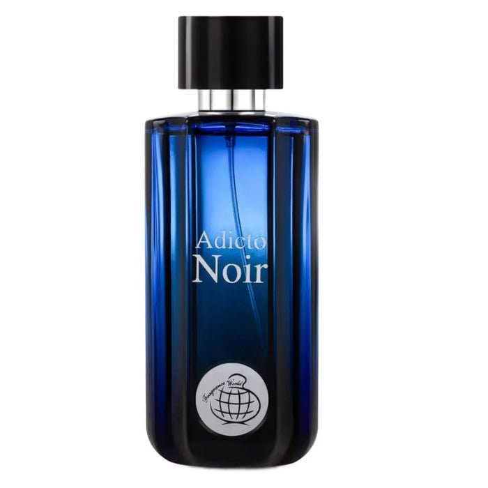 Adicto Noir de Fragrance World es una fragancia árabe femenina. Se caracteriza por ser un aroma oriental floral, sensual y sofisticado, diseñado para la noche, que combina notas de zarzamora, jazmín sambac y una intensa vainilla Bourbon. Perfil olfativo: Almizcle Floral Amaderado. Notas de Salida: Zarzamora, hojas de mandarina y flor de azahar del naranjo. Notas de Corazón: Jazmín sambac, rosa y flor de azahar del naranjo. Notas de Fondo: Vainilla Bourbon, sándalo y haba tonka.