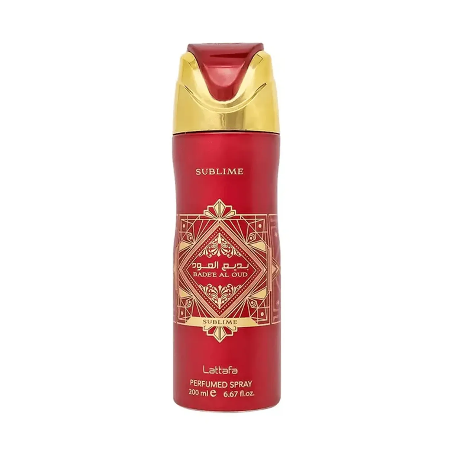 Desodorante Bade’e Al Oud Sublime de Lattafa Perfumes, es una fragancia de la familia olfativa Amaderada Aromática para Hombres y Mujeres. Las Notas de Salida son manzana, lichi y rosa; las Notas de Corazón son ciruela y jazmín; las Notas de Fondo son vainilla, musgo y pachulí. Este desodorante en spray es ideal para que la fragancia dure por mucho más tiempo.