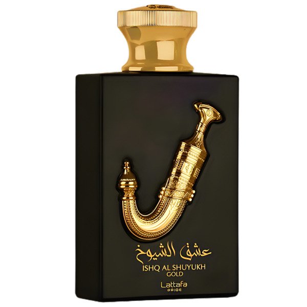 Ishq Al Shuyukh Gold;Lattafa Perfumes;es una fragancia de la familia olfativa Ámbar Vainilla para Hombres y Mujeres. Las Notas de Salida son caramelo y azafrán; las Notas de Corazón son gamuza, cuero y haba tonka; las Notas de Fondo son vainilla, ámbar y almizcle.