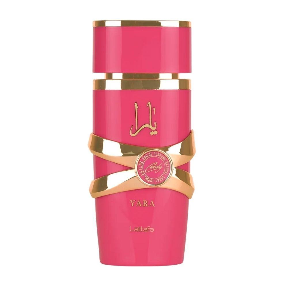 Yara Candy;Lattafa Perfumes;es una fragancia de la familia olfativa Floral Frutal Gourmand para Mujeres. Las Notas de Salida son grosellas negras y Mandarina verde; las Notas de Corazón son Strawberry Fizz Candy y gardenia; las Notas de Fondo son vainilla, ámbar, sándalo y almizcle. Este perfume fue lanzado el año 2024. Yara Candy se inspira en la frescura, la alegría y la dulzura juveniles.