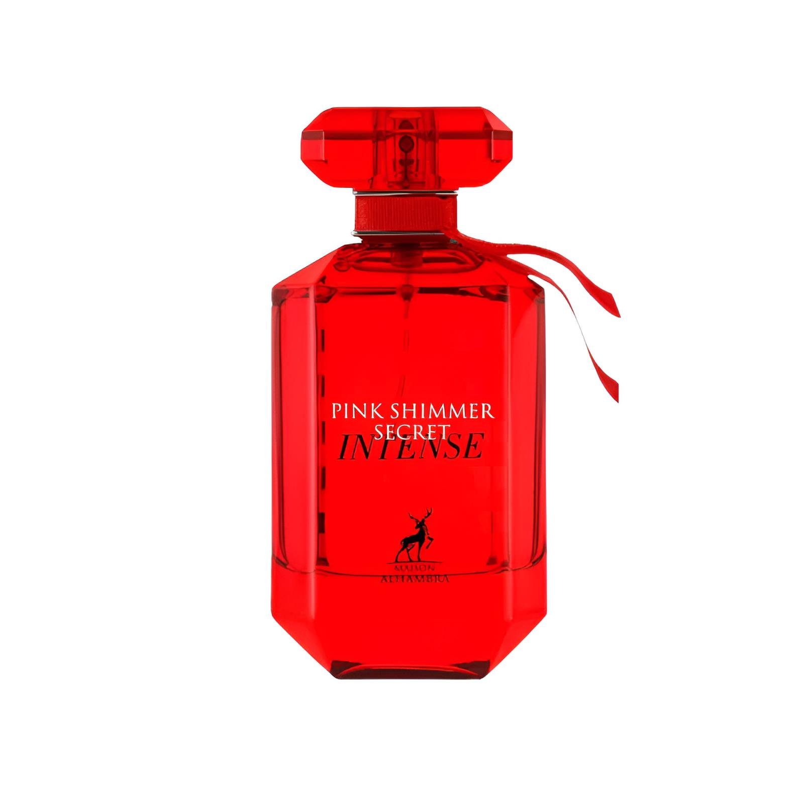 Maison Alhambra Pink Shimmer Secret Intense EDP 100 ml es una fragancia femenina intensa y seductora que combina notas dulces y frutales con un fondo cálido y envolvente. Ideal para mujeres que buscan un aroma moderno, sensual y con gran presencia. Notas de salida: Frutas rojas, Notas dulces. Notas de corazón: Jazmín, Flor de azahar. Notas de fondo: Vainilla, Ámbar, Almizcle.