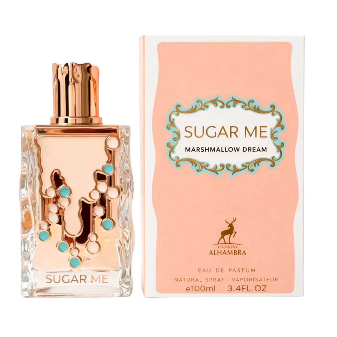 Maison Alhambra Sugar Me Marshmallow Dream EDP 100 ml es una fragancia femenina dulce y envolvente que combina notas gourmand irresistibles con un fondo cálido y cremoso. Ideal para mujeres que buscan un aroma delicioso, moderno y con gran personalidad. Notas de salida: Azúcar, Frutas dulces. Notas de corazón: Malvavisco, Vainilla. Notas de fondo: Almizcle, Ámbar, Notas cremosas.